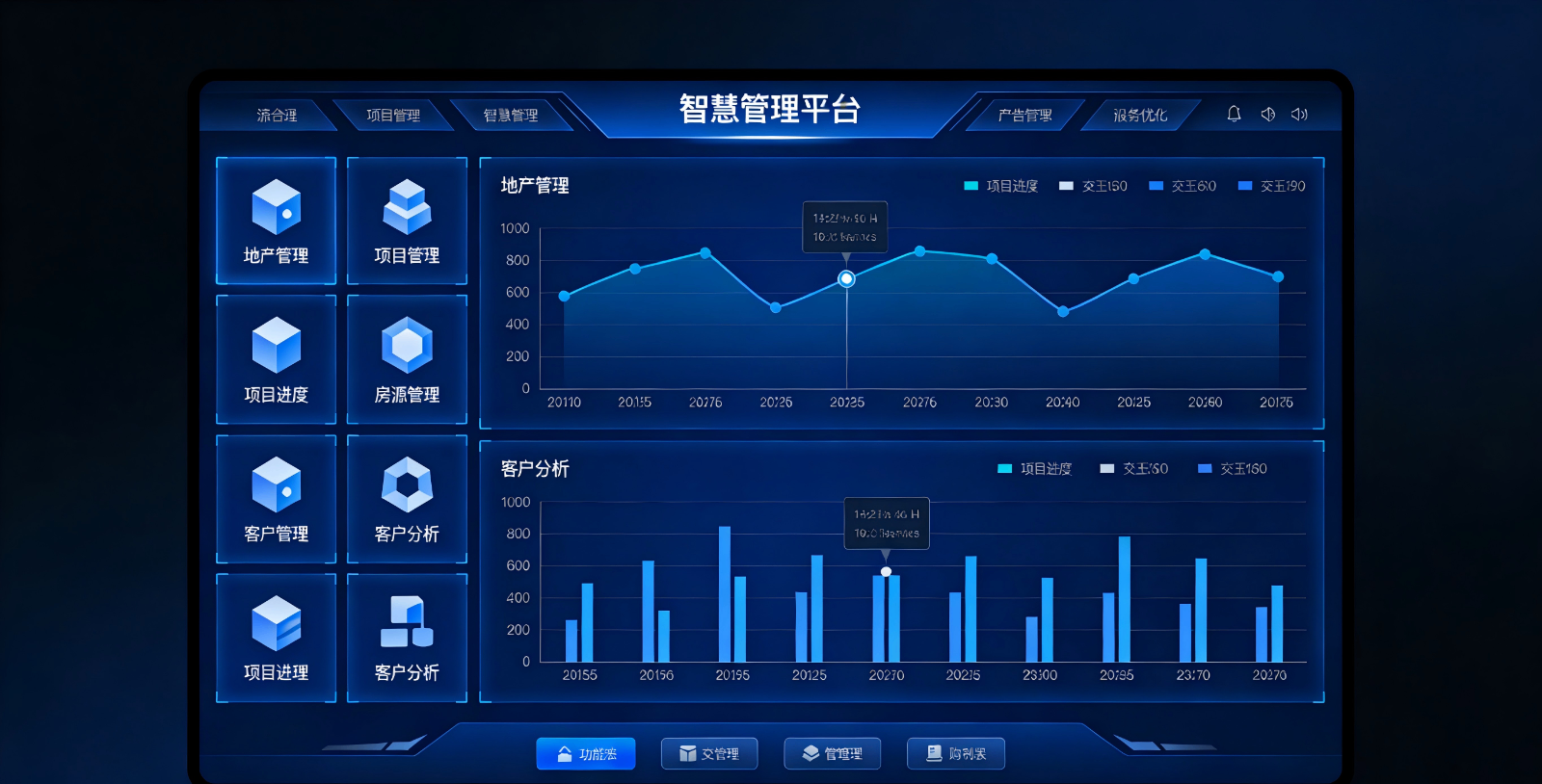 随着地产行业进入精细化管理时代,鸿泰地产作为行业深耕者,在日常运营管理中逐渐暴露诸多痛点,严重制约企业数字化转型步伐。一方面,原有管理系统较为零散,涵盖项目管控、招商运营、客户服务、财务管理等多个模块的系统相互独立,数据无法互通,形成“信息孤岛”,导致跨部门协作效率低下,人工统计、数据核对工作量巨大,易出现误差;另一方面,传统管理模式依赖人工操作,流程繁琐、响应滞后,无法快速适配市场变化与项目管控需求,不仅增加了人力与时间成本,还影响了管理决策的及时性与准确性;此外,原有系统交互体验生硬,员工学习成本高、操作效率低,客户服务响应不及时,难以满足企业高质量发展与精细化管理的核心需求。为破解上述痛点,鸿泰地产亟需一套全链路、一体化的智慧管理解决方案,而立非-Lifre凭借在智慧管理领域的技术积淀与行业经验,成为其核心合作伙伴,共同推进智慧管理平台全链路改造项目。