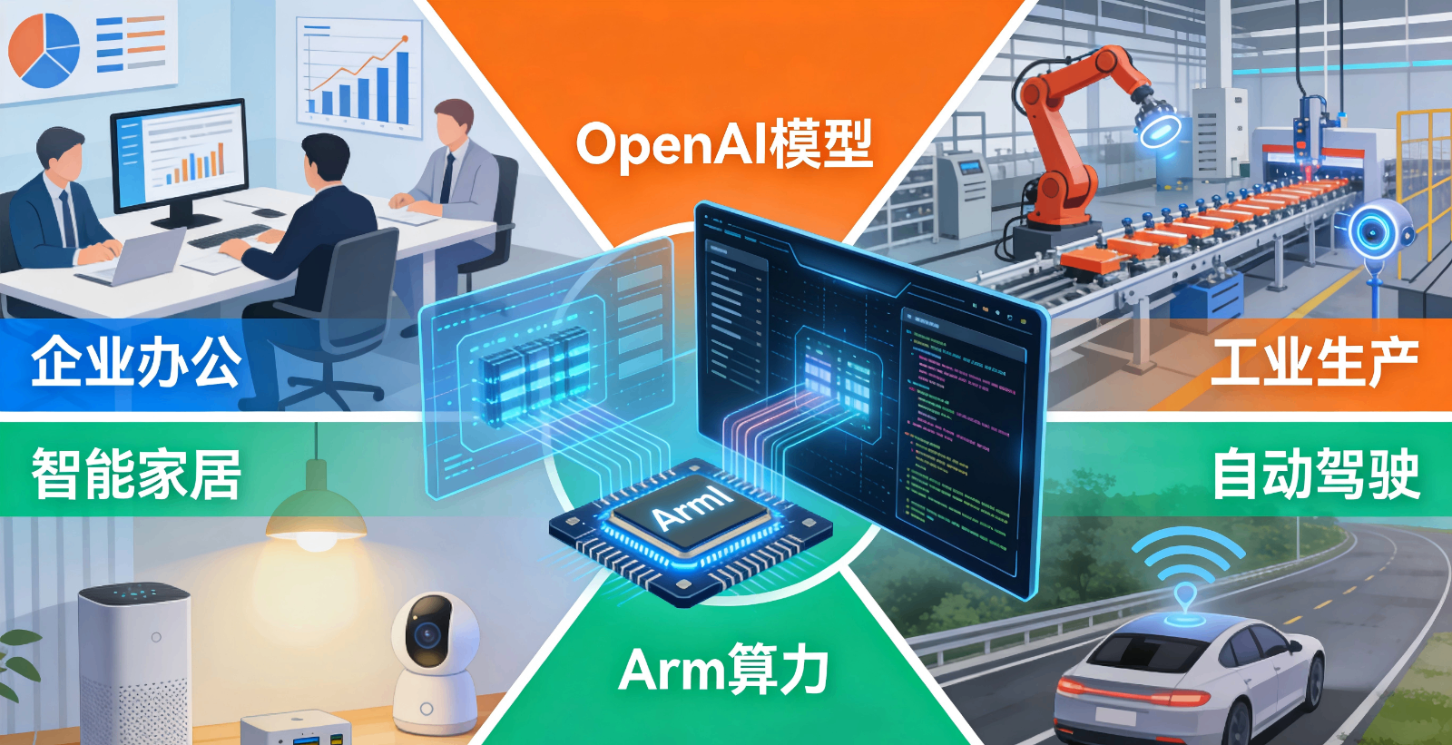 边缘计算:基于 Arm 的低功耗优势,推动 AGI 能力下沉至边缘设备,赋能自动驾驶、工业物联网、智能家居等场景,实现 “端边云” 协同算力架构。