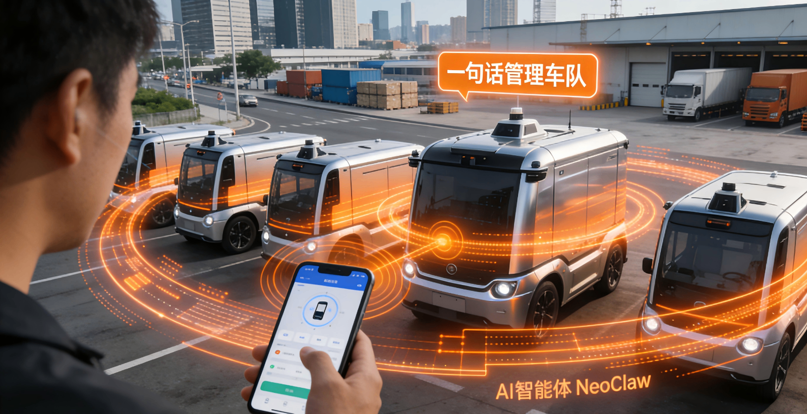 无人配送行业的核心痛点是规模化运营中的 “规模不经济”—— 车队规模扩大后,人员成本攀升、管理复杂度上升、新城市拓展周期长,而 NeoClaw 精准解决这一痛点,核心应用场景包括:一是大型园区配送,在物流园区、工业园区等场景中,单个人员可通过 NeoClaw 管理 100 辆以上无人车,替代传统 “人盯车” 模式,降低 70% 以上的运营人力成本;二是城市即时配送,在美团、饿了么等即时配送网络中,实现无人车的批量调度与应急处理,提升配送效率;三是新城市快速落地,无需搭建庞大的运营团队,仅通过 AI 智能体即可完成无人车的初期运营,将新城市拓展周期从 3 个月缩短至 1 个月。