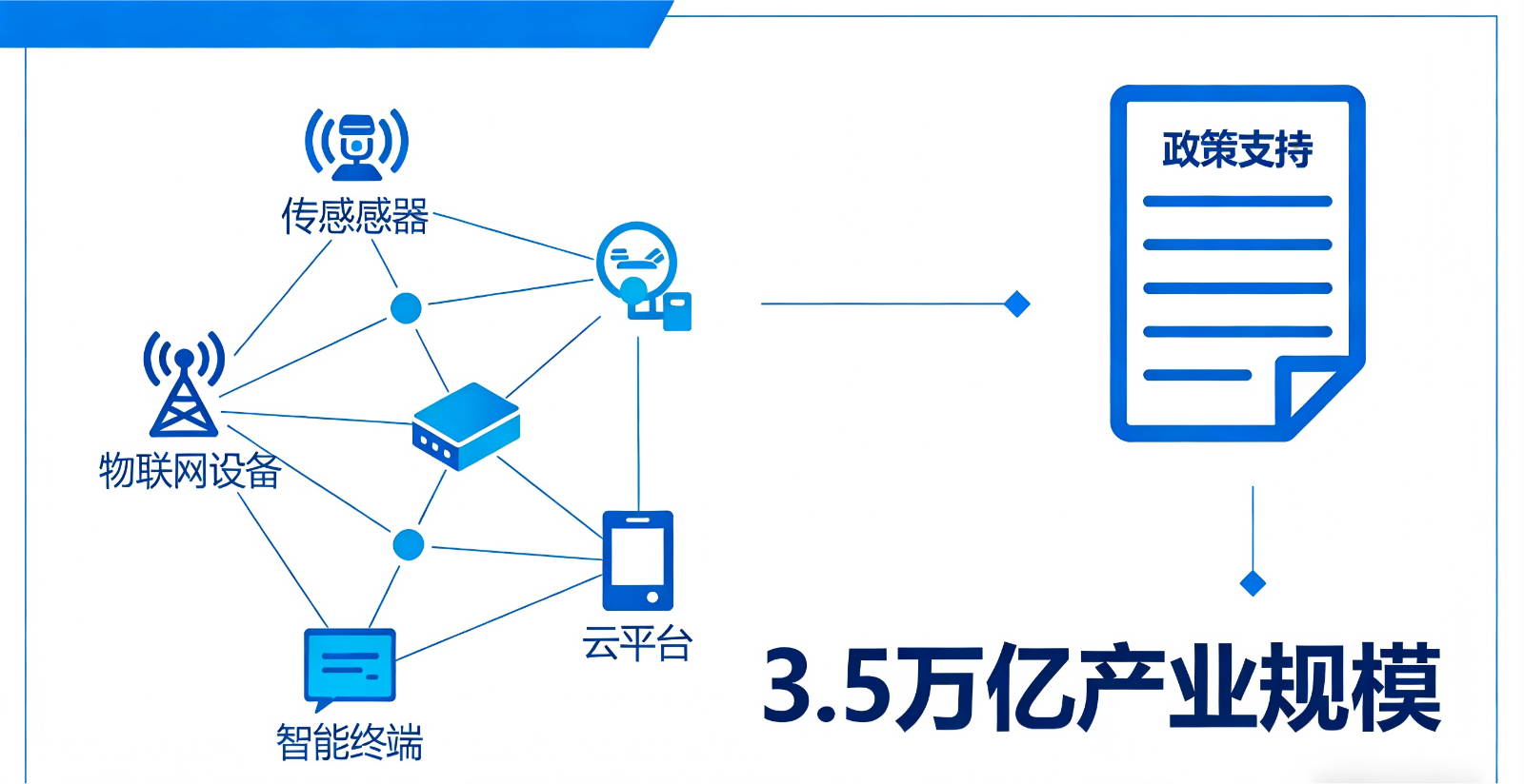 (二)影响分析:此次政策出台标志着我国物联网产业从规模化扩张转向高质量发展阶段。一方面,标准体系完善将有效解决当前物联网协议碎片化、设备互联互通难的行业痛点,为跨场景、跨领域规模化应用扫清技术障碍,降低企业部署成本。另一方面,3.5 万亿产业规模目标将引导千亿级政策与资本资源向物联网领域倾斜,推动芯片、传感器、网络传输、平台服务等全产业链协同升级,加速物联网与制造业、农业、交通、医疗等实体经济深度融合。同时,方案聚焦高价值应用场景培育,将催生一批具备全球竞争力的物联网龙头企业与创新型中小企业,重塑数字经济产业格局。